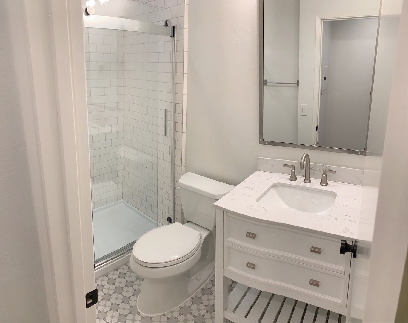 - Luxury Bathroom - Custom Vanity with Storage, Glass Enclosed Subway Tile Shower, Kohler Toilet with Soft