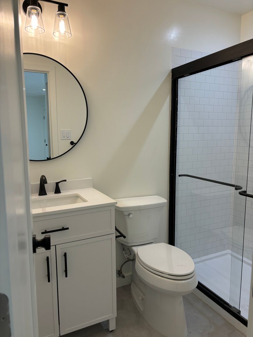 - Luxury Bathroom - Custom Vanity With Storage, Tiled Floor, Kohler Toilet with Soft Close Lid, Custom Faucet, Humidifier Controlled Fan