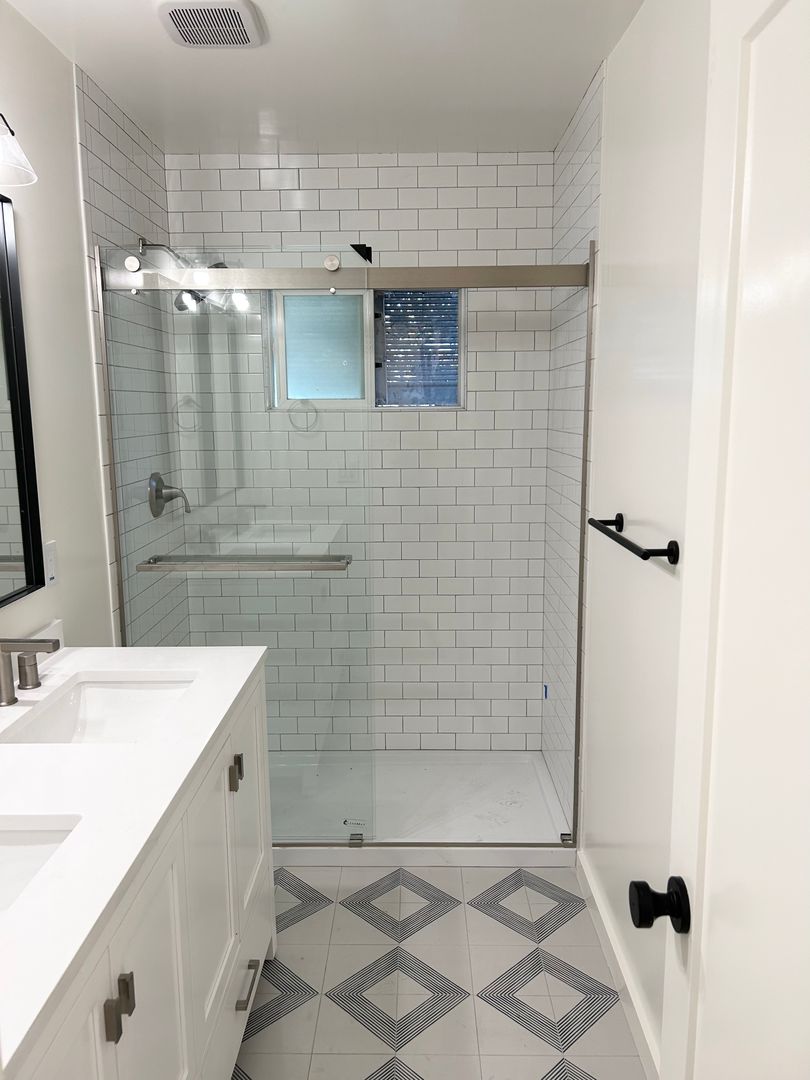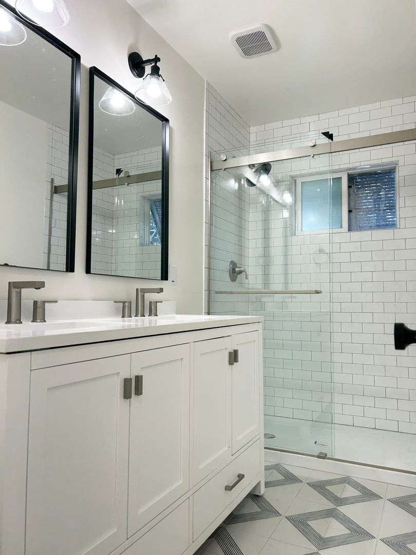 - Luxury Bathroom - Custom Vanity With Storage, Glass Enclosed Subway Tile Shower, Kohler Toilet With Soft Close Lid, Custom Faucet, Humidifier Controlled Fan