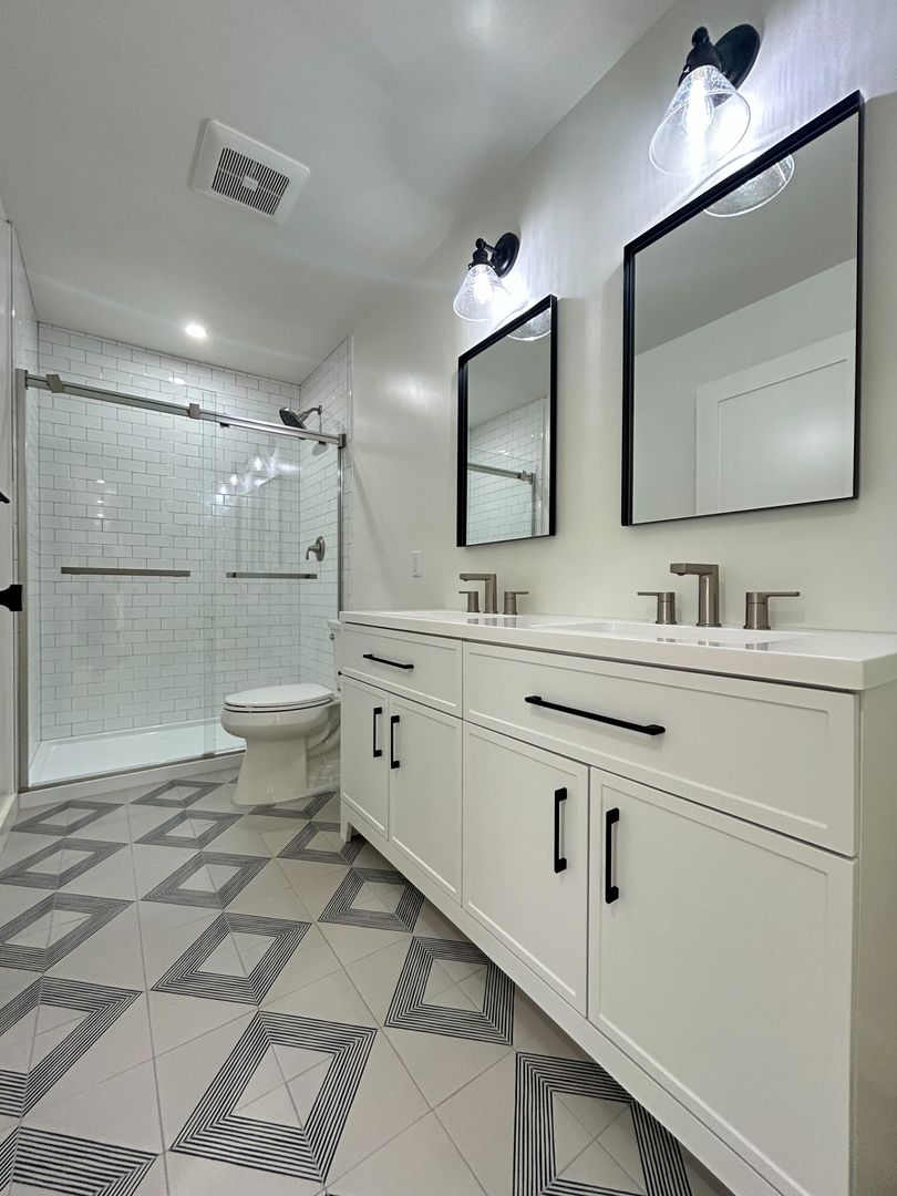 - Luxury Bathroom - Custom Vanity with Storage, Glass Enclosed Subway Tile Shower, Kohler Toilet with Soft