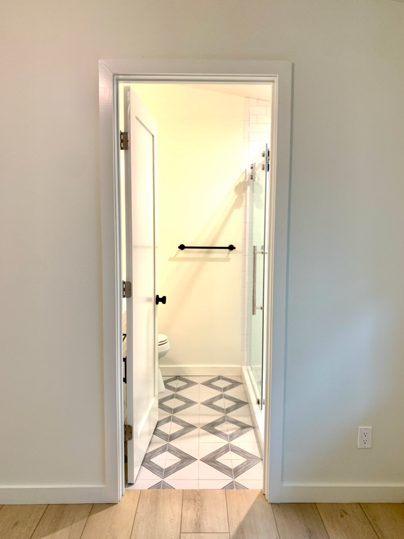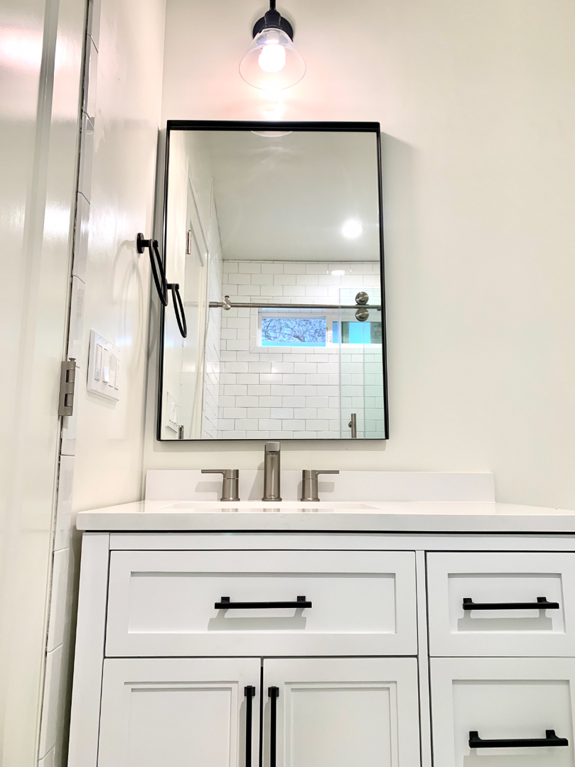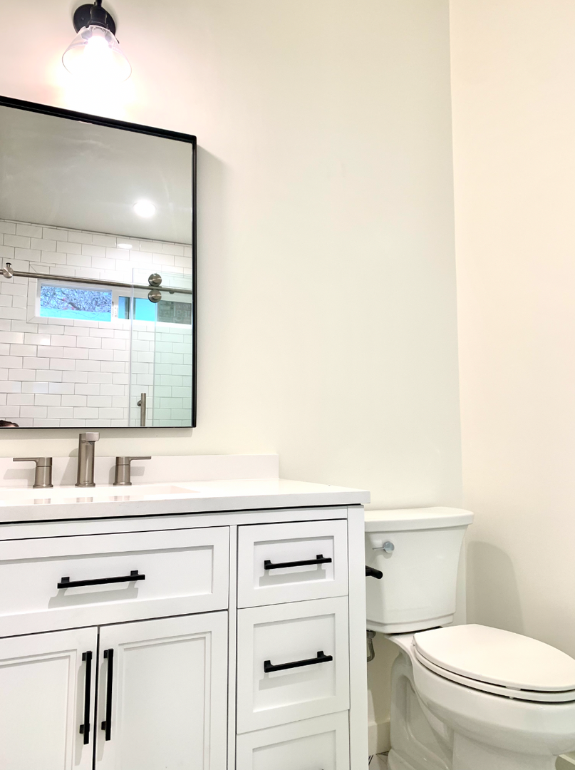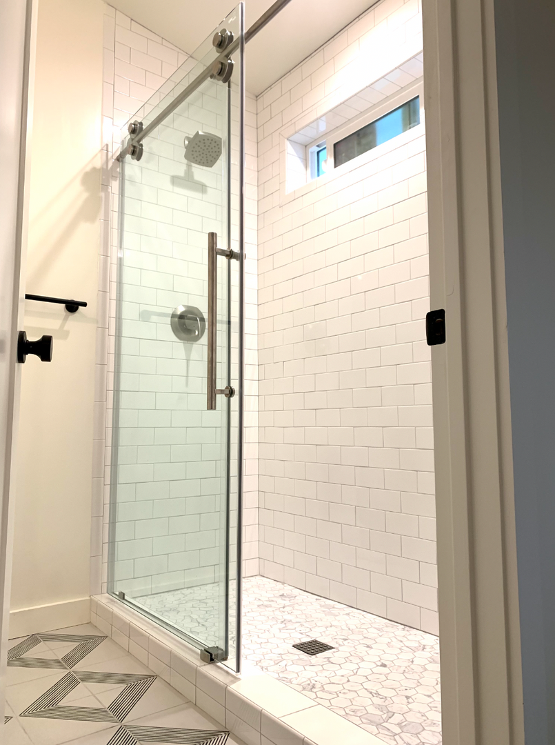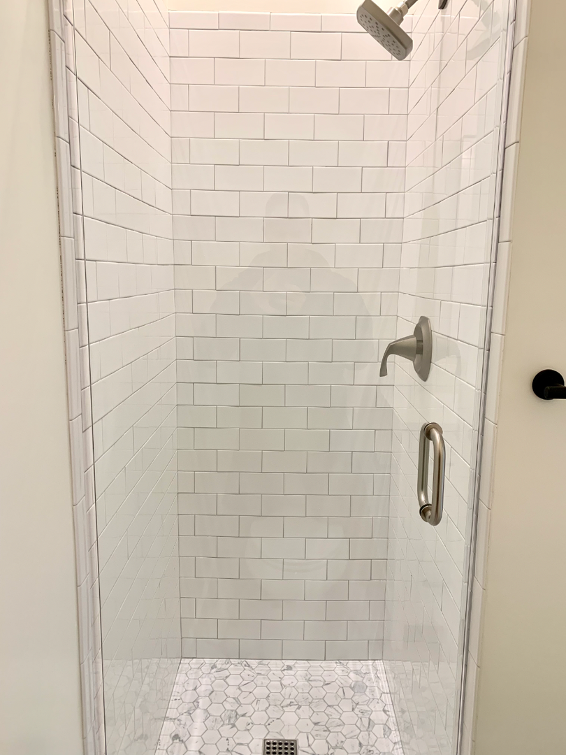 - Luxury Bathrooms - Custom Vanity with Storage, Glass Enclosed Subway Tile Shower, Kohler Toilet with Soft Close Lid, Custom Faucet, Humidifier Controlled Fan